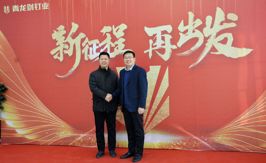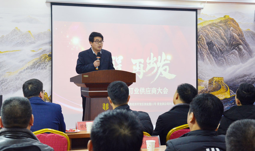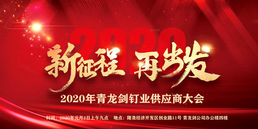 2020年1月2日上午9點,青龍劍釘業2020年度供應商大會在青龍劍經濟開發區公司盛大召開,本次大會以“新征程,再出發”為主題,青龍劍董事長馬志華、總經理馬群澤及各部門負責人與隆堯經濟開發區領導、公司原輔料供應商共計160余位嘉賓共同出席了此次盛會。